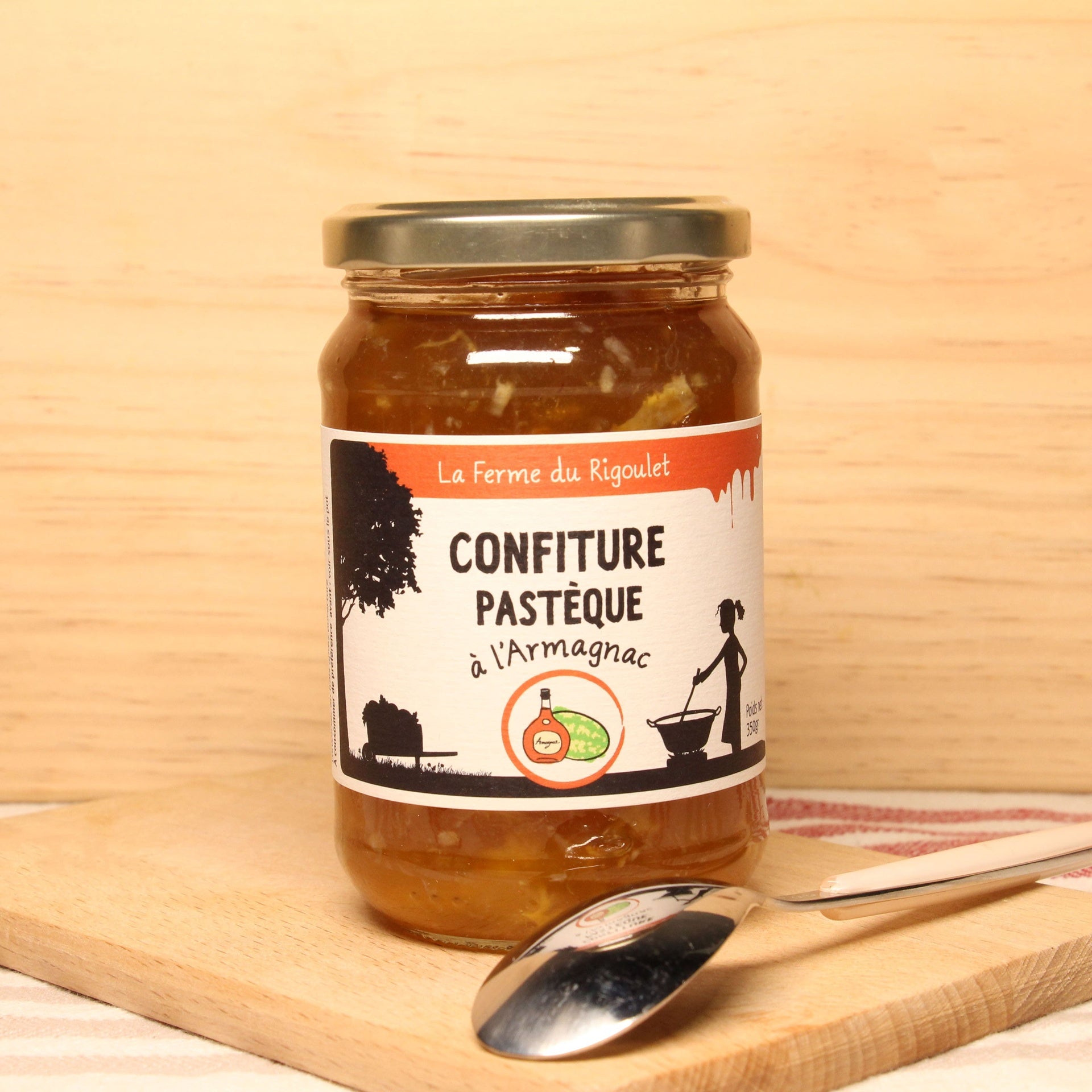 Vous êtes un.e sceptique de la pastèque ? Essayez, vous l'adopterez ! Cette recette de confiture traditionnelle du Sud-Ouest est peu répandue sur les étals. Et pour cause ... ! Le fastidieux travail d'épépinage des pastèques effectué manuellement, exige beaucoup de temps et un certain tour de main. La cuisson est réalisée à feu nu selon un savoir faire familial transmis secrètement depuis 3 générations d'agriculteurs-confituriers. On obtiens ainsi une confiture aux morceaux délicatement confits baignant dans une pulpe onctueuse, accompagnés de fruits et d'épices... Joie !