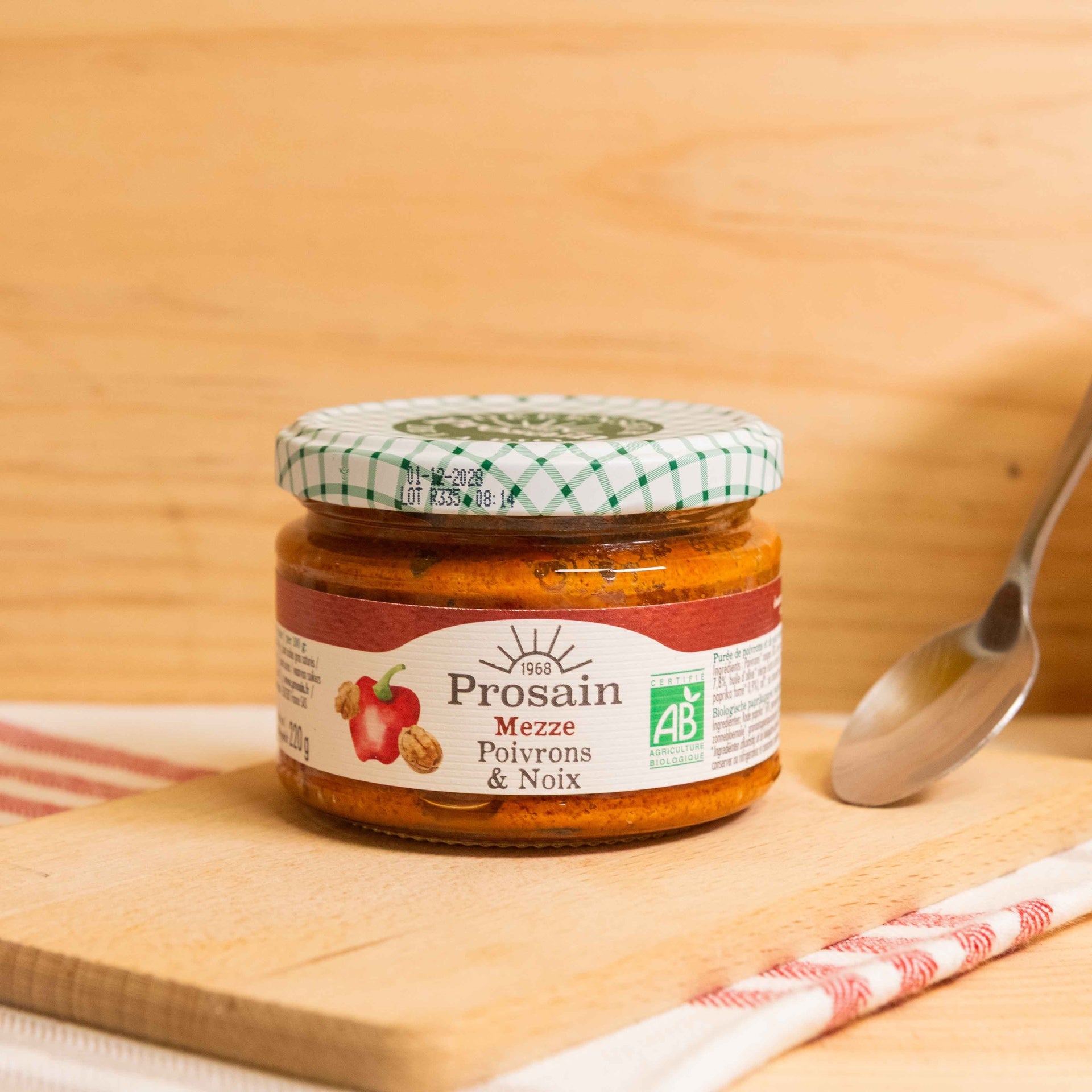 Poivrons* rouges 58%, poivrons* rouges grillés 10%, graines de tournesol*, noix*, huile d'olive* vierge extra, huile de tournesol*, jus de grenade* concentré, sel de mer, épices* (dont paprika fumé* 0,9%), ail*, jus concentré de citron*.