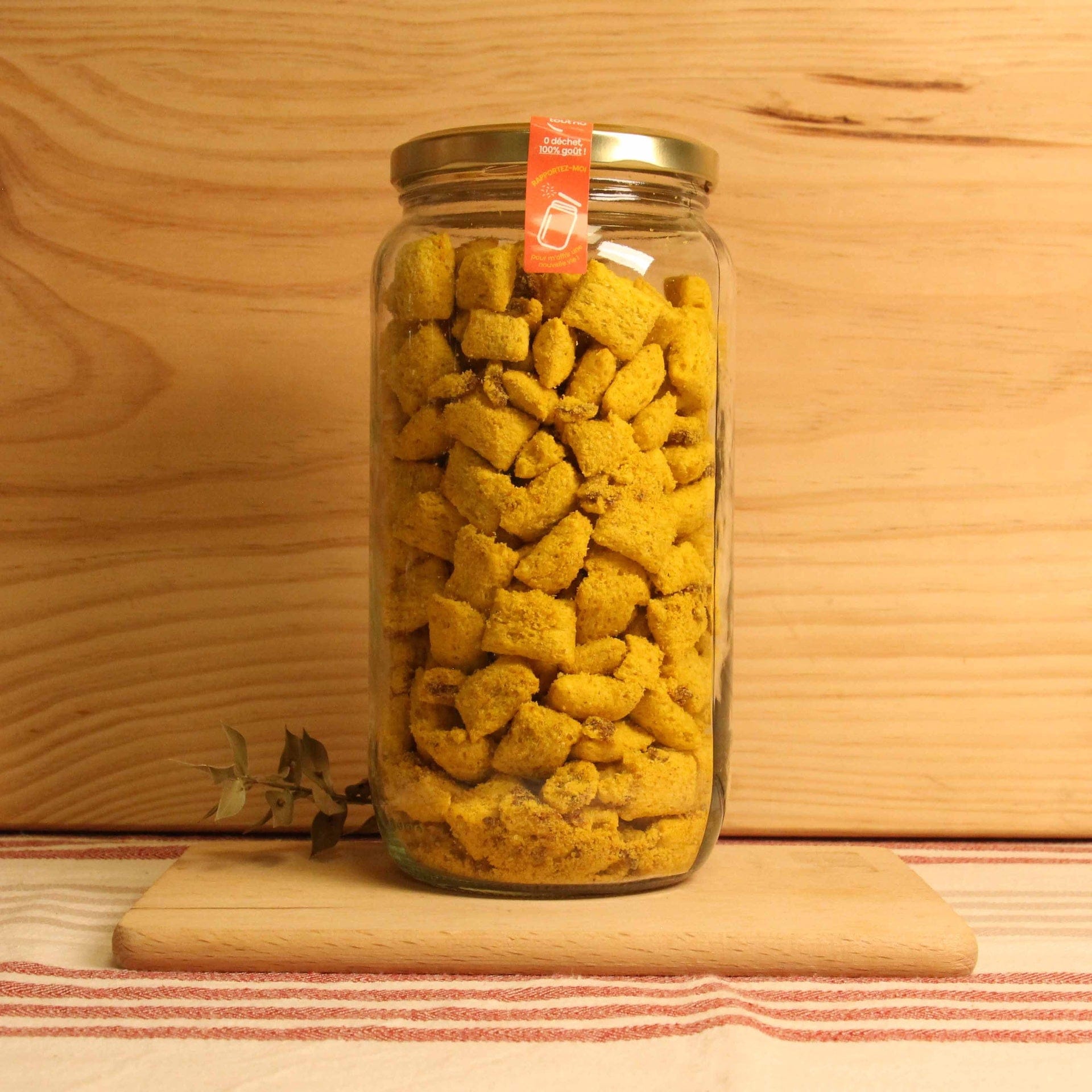 Céréales 52,6% (farine de blé 20,6%, farine d’avoine 18,2%, farine de riz 13,8%), chocolat et crème de noisette 35% [sucre, huile végétale (tournesol, colza), noisettes 1,8%, matières grasses, cacao en poudre 1,6%, cacao en masse 1,4%, lait écrémé en poudre, émulsifiant : lécithines de colza, arôme naturel, antioxydant : extrait riche en tocophérol], sucre, son de blé, sel, colorant : bêta-carotène.