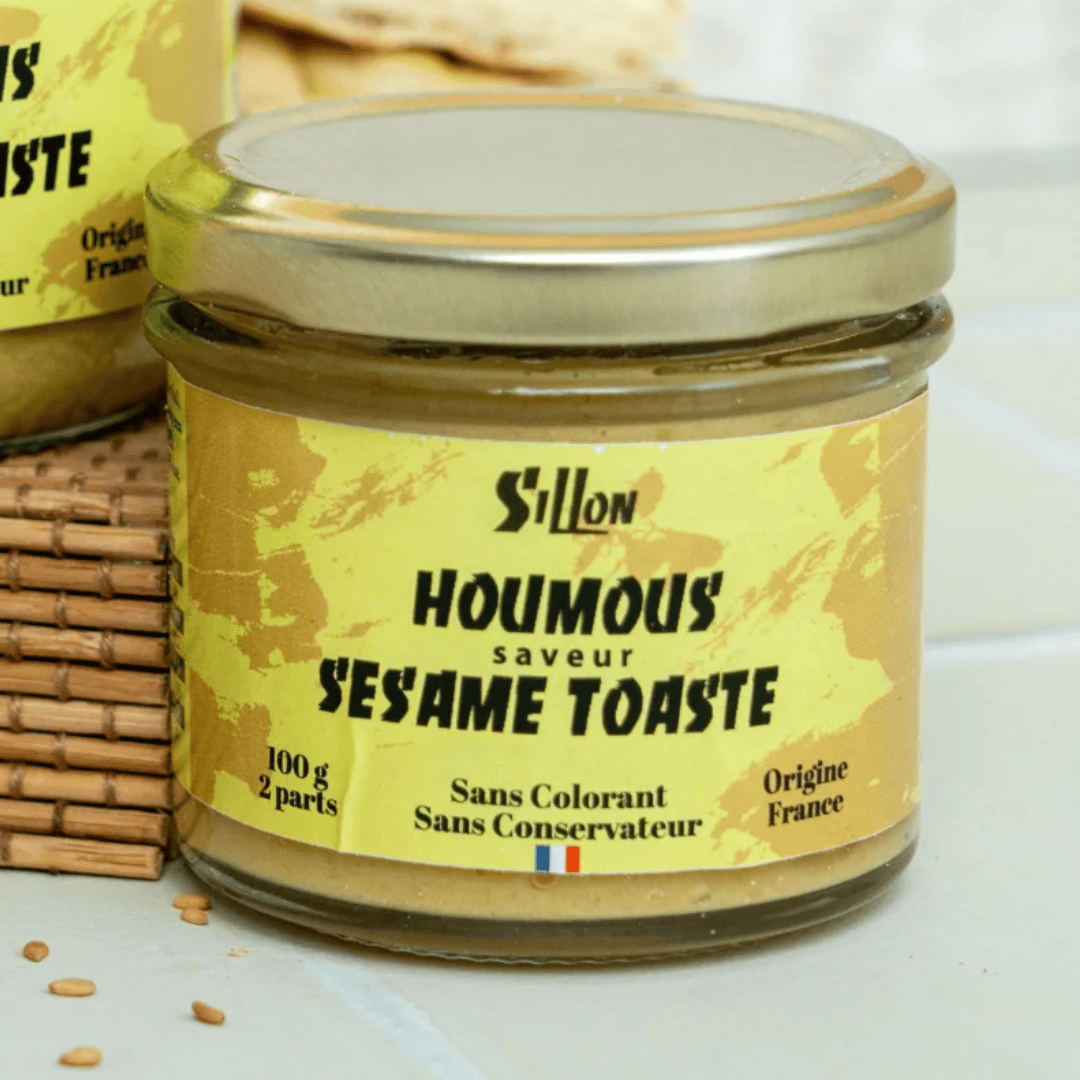 Découvrez le houmous au sésame toasté SILLON, une délicieuse fusion de saveurs authentiques et d'ingrédients de qualité supérieure. Élaboré avec des pois chiches biologiques de chez Axel et Paul, reconnus pour leur engagement à relocaliser les productions biologiques en France , notre houmous offre une texture onctueuse et une richesse exceptionnelle.