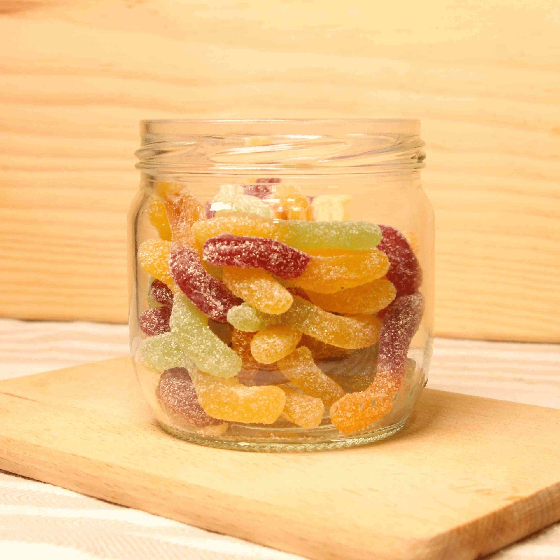 Le plaisir des vers acidulés, sans gélatine animale, sans gluten, sans lactose et sans artifice. Colorants et arômes naturels à base de vrais fruits.