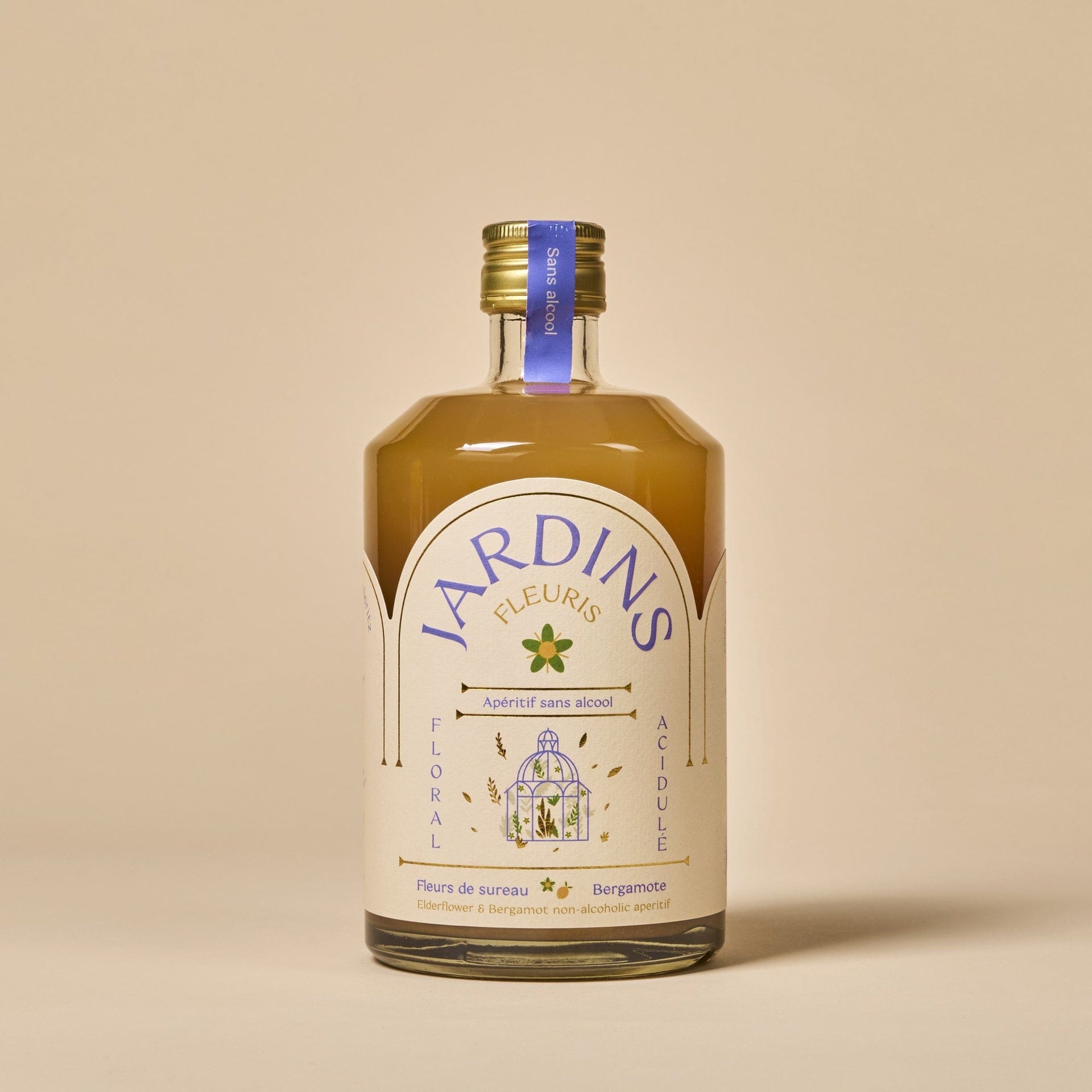Eau, jus de pommes* des vergers, infusion de fleurs de sureau*, moût de raisin*, jus de gingembre*, jus de citron vert*, arômes naturels*, extrait naturel de bergamote, extrait naturel, concentré* (potiron*, pomme*), farine de graine de caroube*.