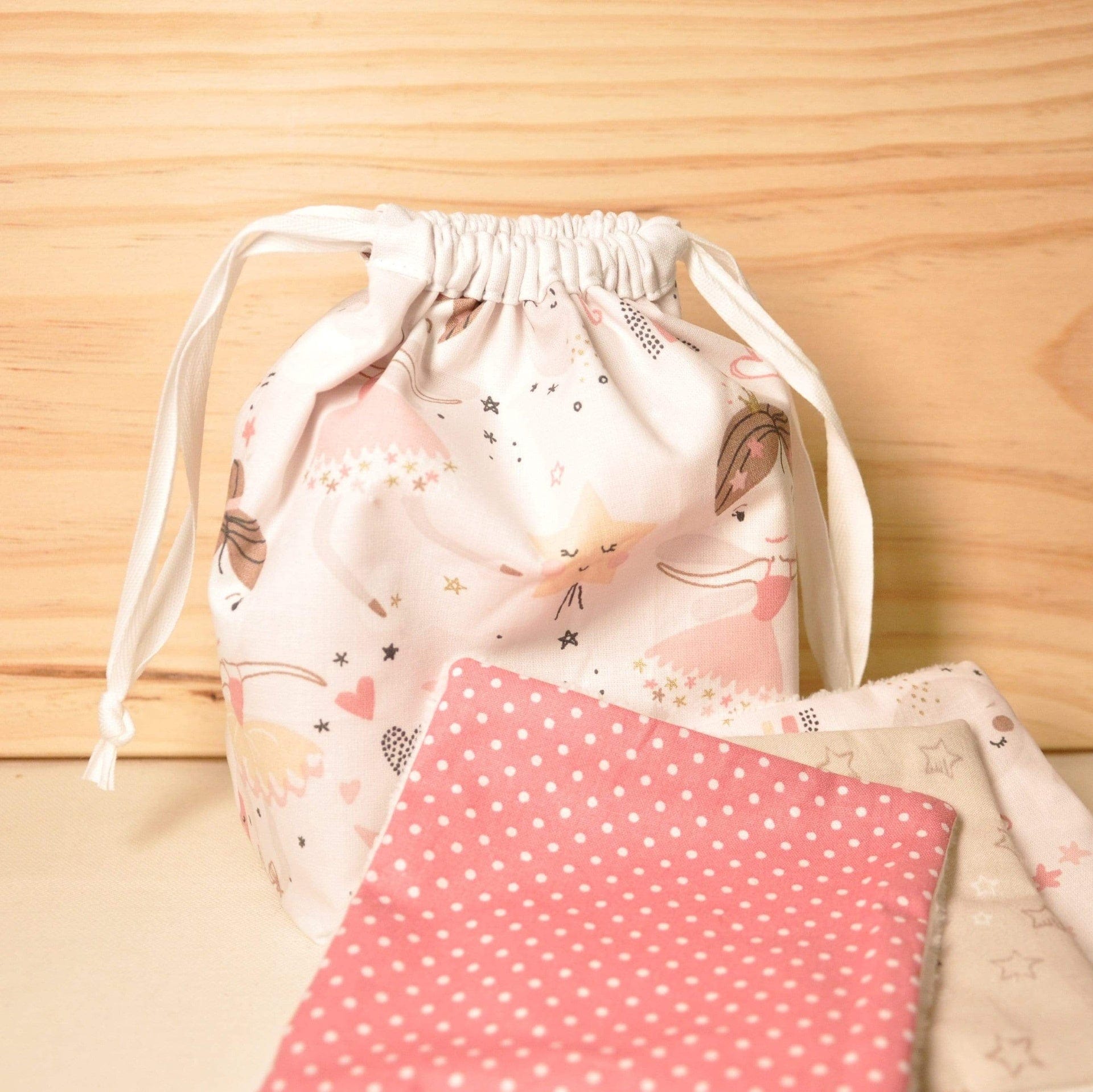On vous propose un lot de 10 débarbouillettes (dimension d'une débarbouillette : 11x11cm) et son pochon assorti.