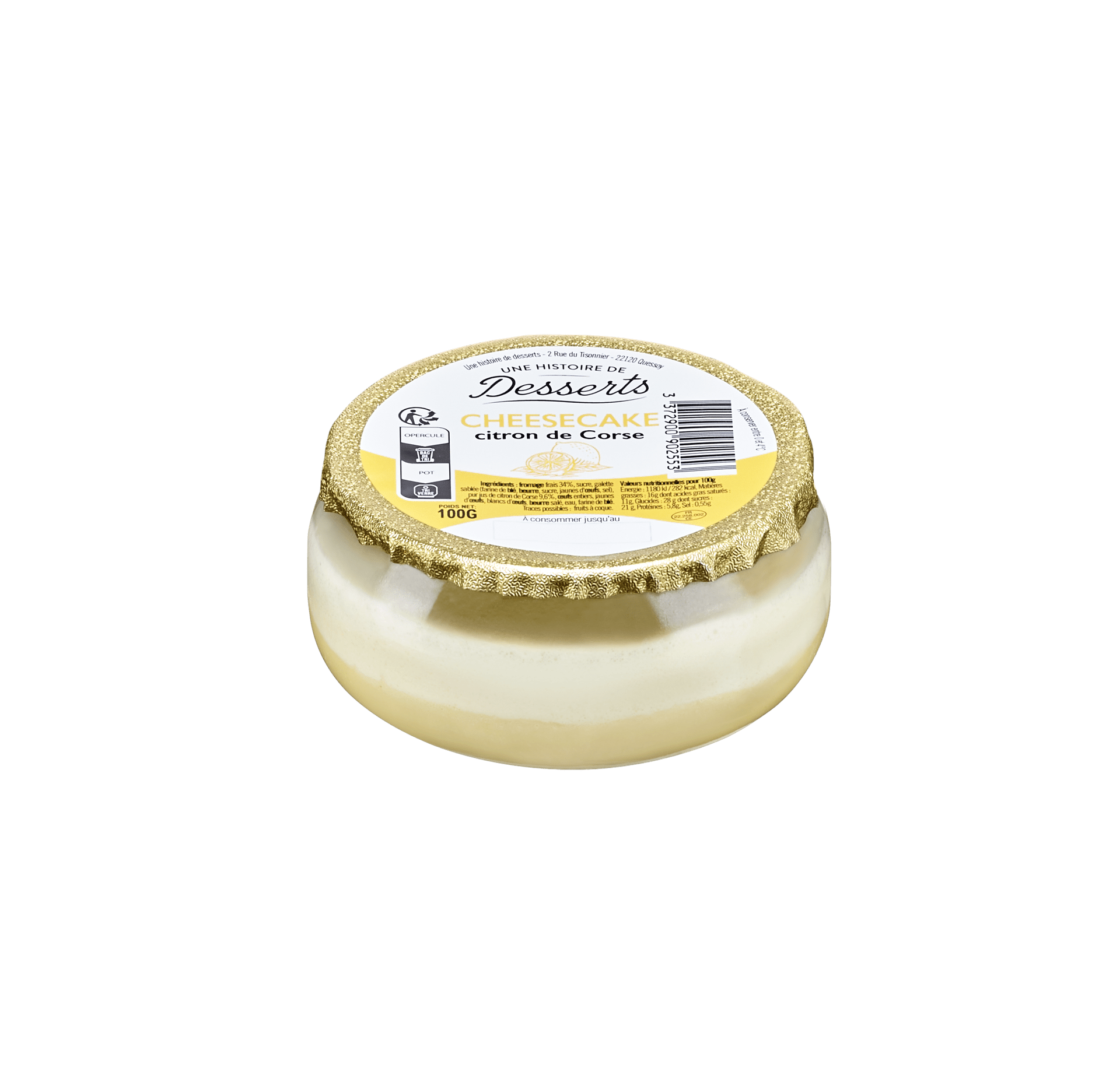 Cheesecake préparé avec une galette sablée dorée et croustillante, une crème confectionnée avec du pur jus citron de Corse et un appareil à fromage frais réalisé avec du fromage frais breton et des œufs de poules élevées en plein air.