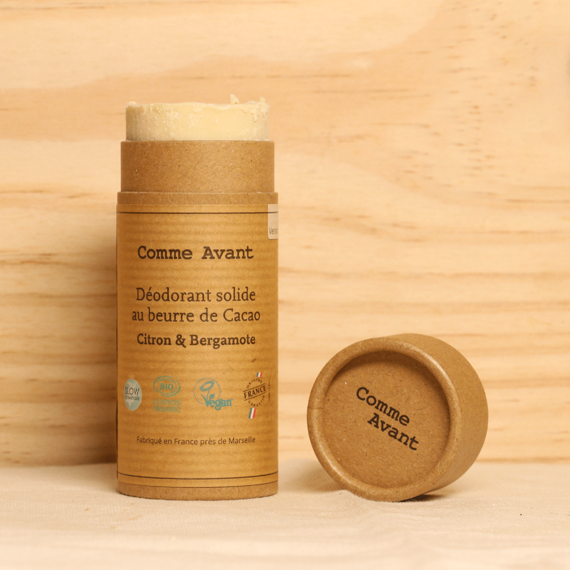 Ce déodorant solide au parfum doux et acidulé de citron et de bergamote régule votre transpiration et limite les odeurs.