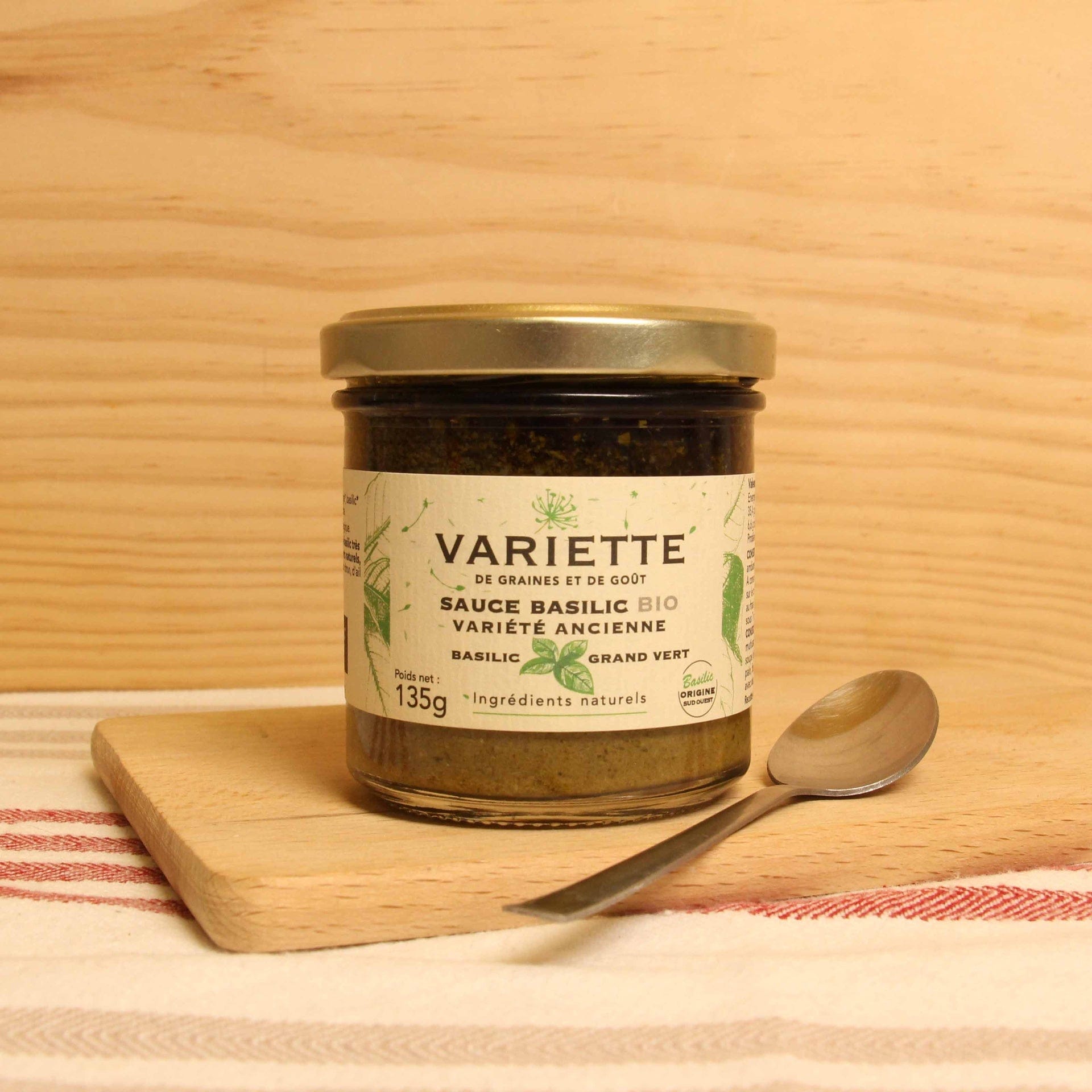 Fabrication : Cuisiné de façon artisanale dans un atelier bio gersois, le basilic est cuisiné frais, juste après la récolte.